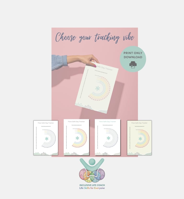 Choose your tracking vibe with 4 different day trackers to download and print. Designed in pastel tones, this one-day printable tracker has been created to reduce overwhelm while helping you stay gently connected to your period changes.